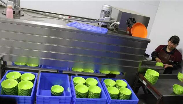 使用過的餐盤經周轉車運送至洗消線后,由工作人員將餐具放置在洗消線上,洗消流程開始。