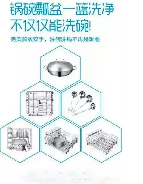 自動洗碗機清洗全程無外界接觸,高溫可以達到70攝氏度以上,可有效殺滅大多數(shù)廚房、餐具上的細菌,更好地保護您的健康。清洗過的餐具亦可存放在自動洗碗機中,安心以備下次使用。調(diào)查顯示廚房用品的細菌污染狀況(一般生菌數(shù)):海綿(1億~100億/個),洗碗布(1億~100億/枚),碗刷(1萬~1億/cm2),切菜板(100~10萬/cm2),菜刀(1~10萬/cm2)