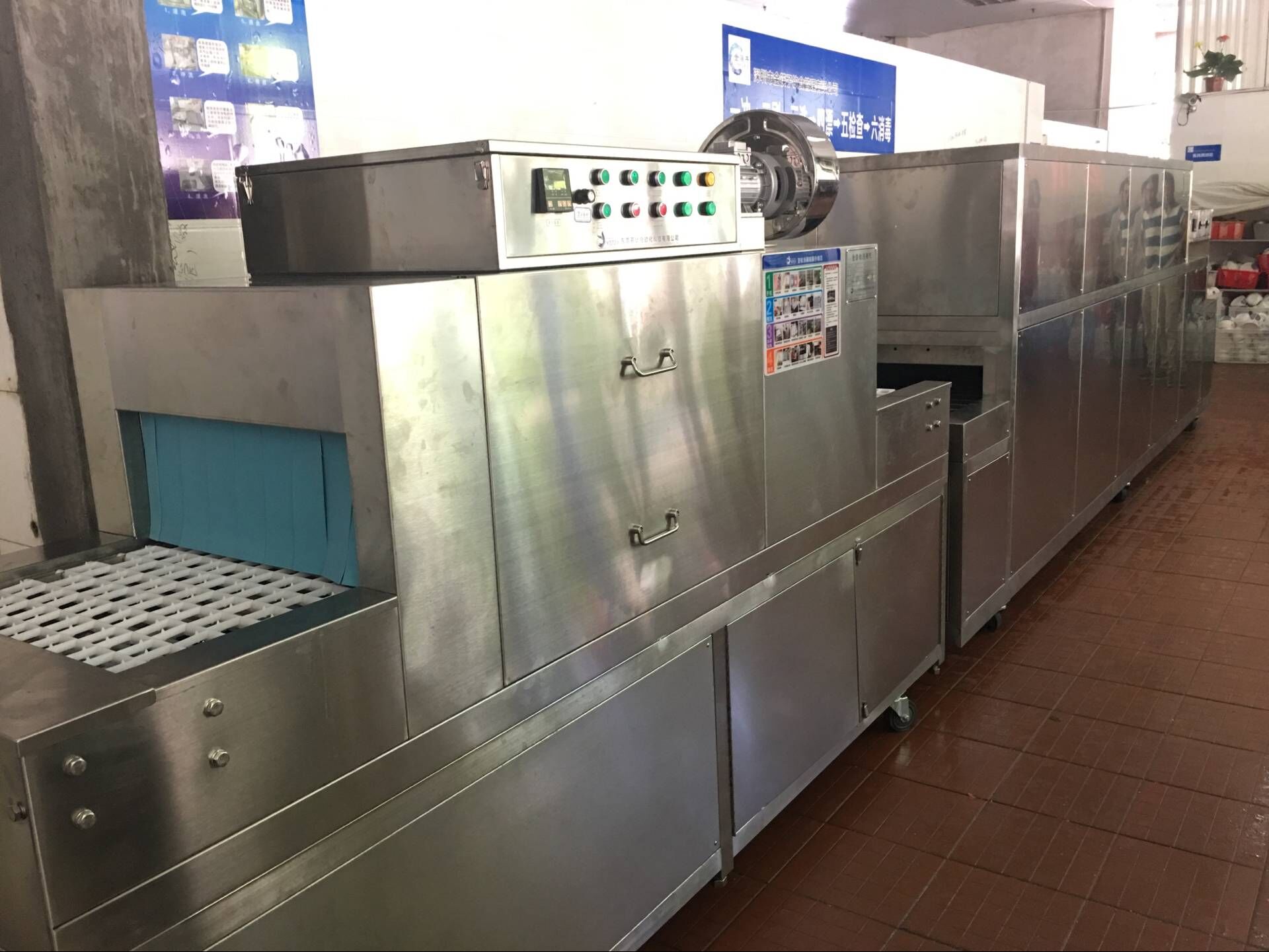 3,  洗消:將餐具裝框,推進洗碗機清潔和消毒。
