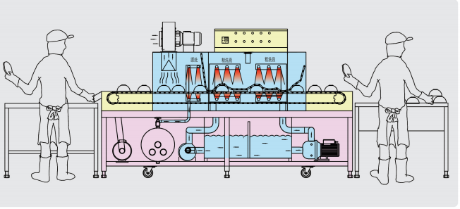 1、結構特點:產品選用SUS304不銹鋼材料制作,避免產生銹蝕而對餐具形成二次污染;清洗餐具采用平放式,可以更好地保證餐具的清洗效果,不會出現清洗死角。