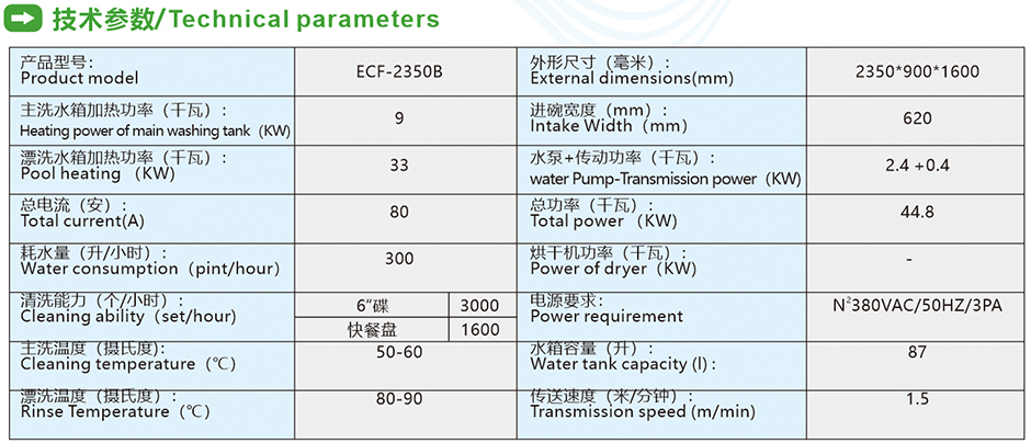 單缸一道漂洗斜插式洗碗機ECF-2350B