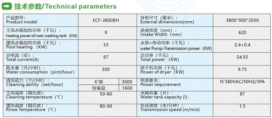 • 單缸一道漂洗單烘干斜插式洗碗機ECF-3800BH