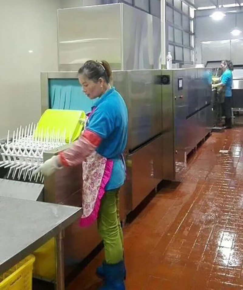 YATAI斜插式系列洗碗機,是我公司結合中外飲食文化而研發設計的無死角自動清洗設備,采用標準單元組合,標準化加工生產制造。主要由,清洗單元、高溫凈水消毒單元(85℃)組成。機器清洗后餐具,符合餐飲相關衛生標準。全機采用不銹鋼板制造,噴嘴采用304不銹鋼一體沖壓扇形噴嘴,噴洗時產生扇形水流,可均勻噴洗餐具表面,清洗餐具無死角。餐具口朝下直接斜插放于碗框內推進洗碗機,高壓水直接噴洗餐具表面及內部,不留死角。產品性能穩定,使用成本低,操作簡單,安全易維護。