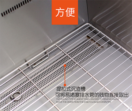 5. 提拉式沉渣槽,可將易堵塞排水管的藏留物直接取出。